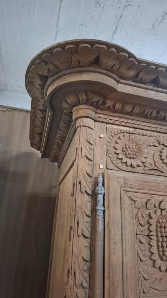 Très belle armoire normande de mariage epoque XIX décapée. Cette armoire dispose de trois étagères à l intérieur. Armoire entièrement démontable. Possibilité de livraison dans toute la France Epoque : 19ème siècle Style : Louis XV – Transition Etat : Bon état Matière : Bois massif Largeur : 1m79 Hauteur : 2m34 Profondeur : 54 cm