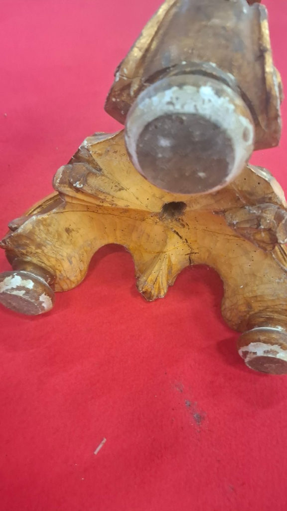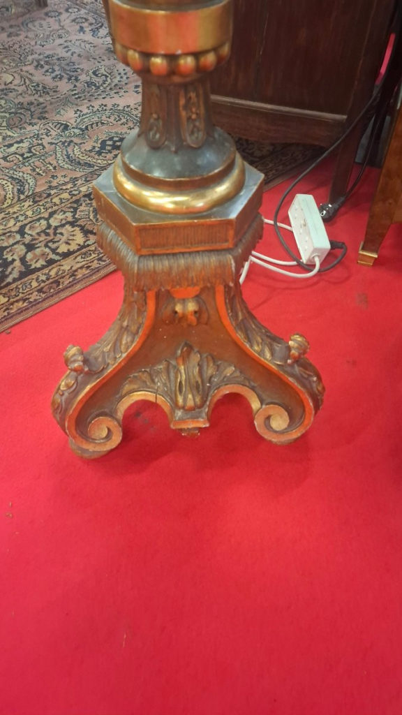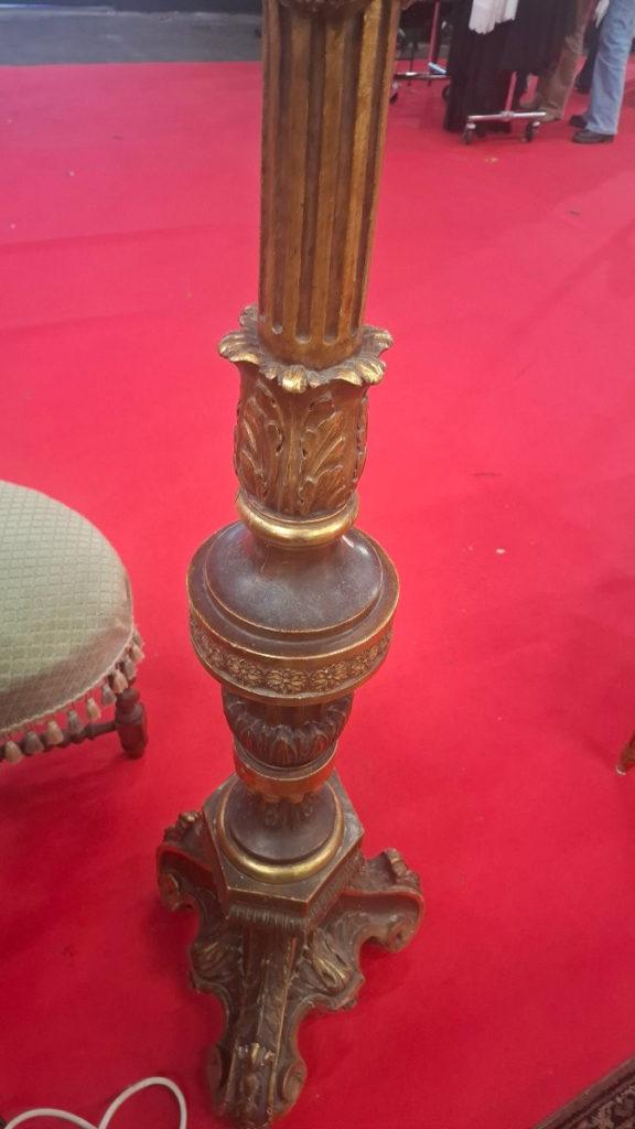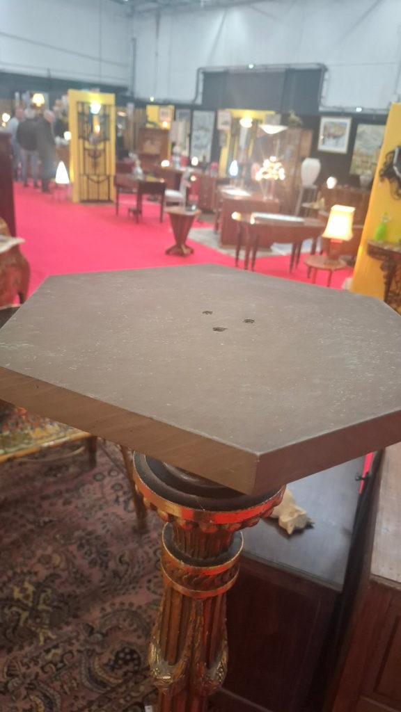 Colonne je pense XIX en bois avec dorure . Le plateau du haut n est pas d origine.  Etat correct . Dorure à la feuille d or. Possibilité de livraison dans toute la France et à l étranger .Epoque: 19ème siècle Style: Louis XVI – Directoire Etat: Bon état Matière: Bois peint Largeur: 36 cm Hauteur: 1m62
