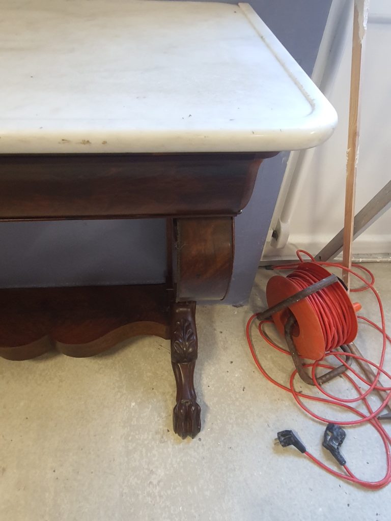 Console en acajou époque XIX avec un tiroir dessus marbre Long 98 cm prof 43 cm haut 87 cm Possibilité de livraison dans toute la france et l europe .