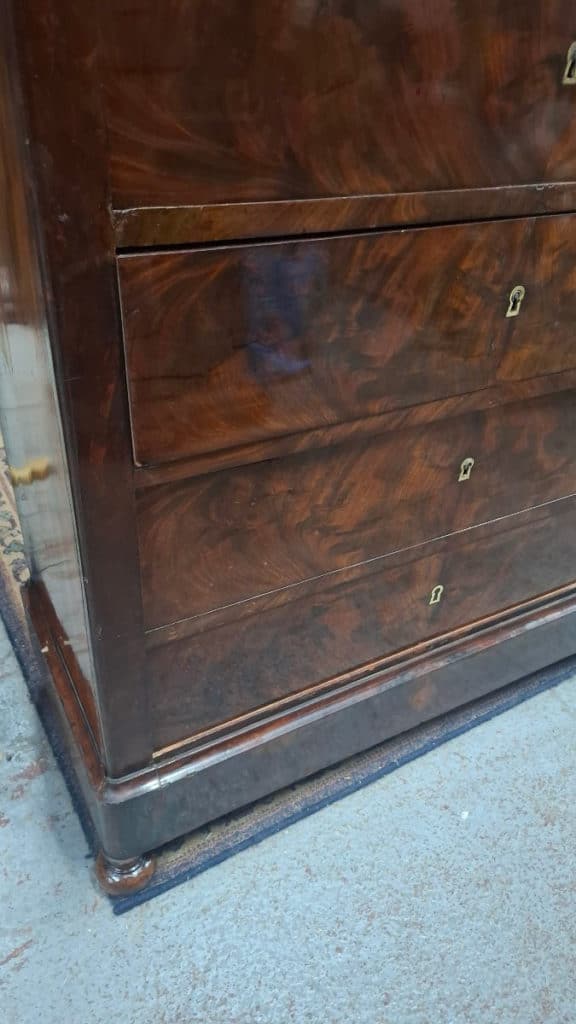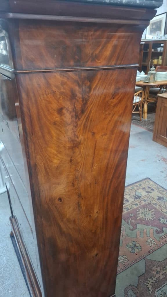 Semainier en acajou dessus marbre en parfait état.  Ce meuble est passé chez l ebeniste vernis refait . Il dispose de 7 tiroirs avec l intérieur en chene . Époque XIX  .Il dispose d une clé.  Possibilité de livraison dans toute la France et à l étranger. Epoque: 19ème siècle Style: Louis Philippe-Restauration-Charles X Etat: Très bon état Matière: Acajou Largeur: 1 m Hauteur: 1m50 Profondeur: 45 cm